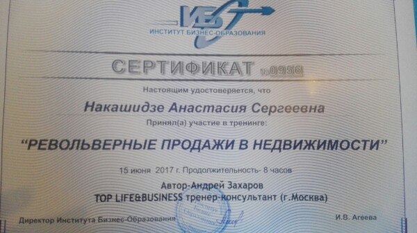 Мы очень благодарны Анастасии за помощь при покупке квартиры. Было очень тяжело найти дом на земле, время поджимало, т. к мужу надо было уезжать в скором времени. Дом нашли и Анастасия начала работать, мы очень переживали, но она нас успокоила, что все успеем сделать. Так и получилось, сделка состоялась, документы в МФЦ успели сдать. Мы очень благодарны Анастасии за её профессионализм, отзывчивость, мы могли позвонить в любое время, если было что-то не понятно. Хотим пожелать Анастасии дальнейших успехов в её нелёгкой работе.