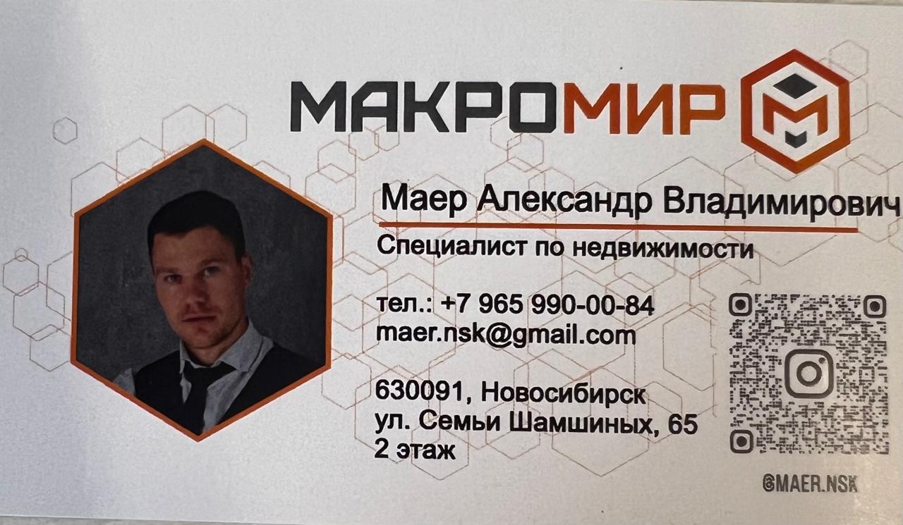 Добрый день! Благодарю за проведенную сделку, мне понравилось как работает риэлтор АН,Макромир’ Александр Владимирович Маер. Профессионал в своём деле, в курсе всех изменений на рынке недвижимости, знает текущие цены , быстро анализирует и предлагает решение, оперативно отвечает на любые вопросы и всегда был на связи с нами и просто приятный человек в общении. Рекомендую обращаться к Александру тем, кто хочет купить или продать свою недвижимость быстро, качественно и надежно!