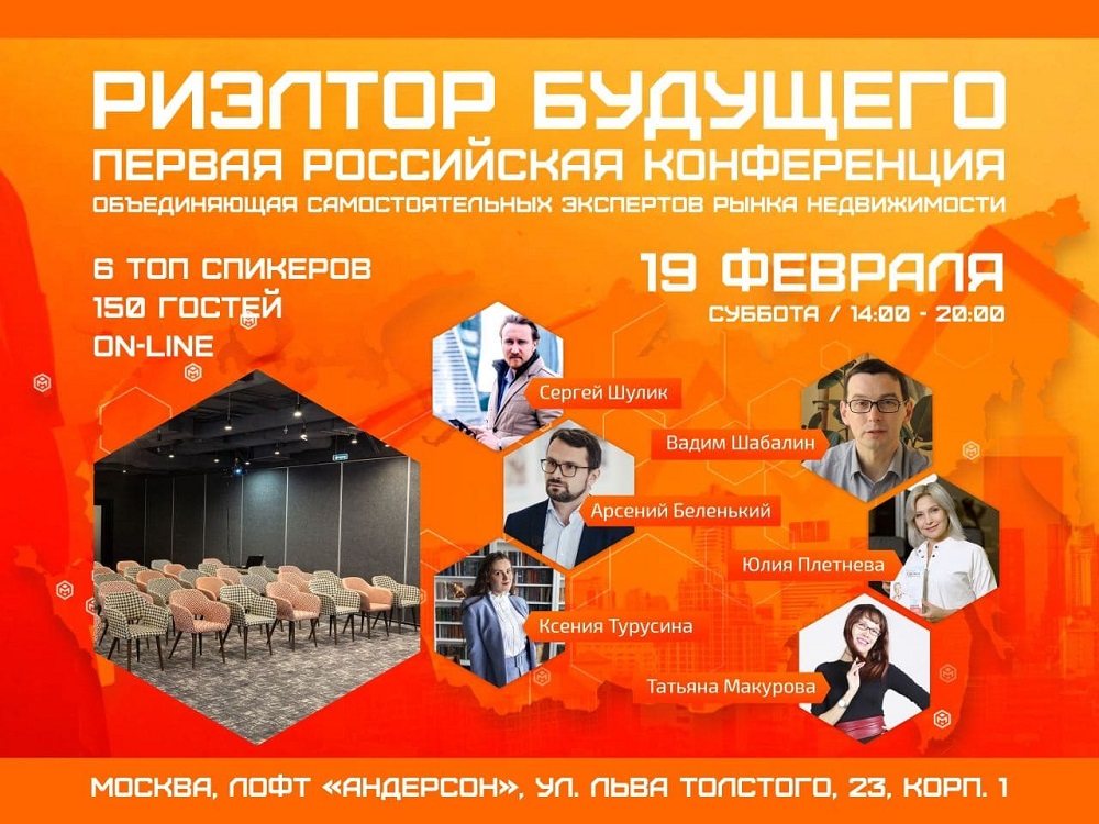«Риэлтор будущего» — не просто конференция, но площадка для обмена опытом и выработки решений, которые помогут построить новый рынок недвижимости. В программе 6 докладов от спикеров, круглый стол и нетворкинг с представителями риэлторского сообщества со всей страны. Конференция соберет 150 экспертов отрасли на площадке «Андерсен» лофта в Москве, а также более 500 участников в режиме онлайн.